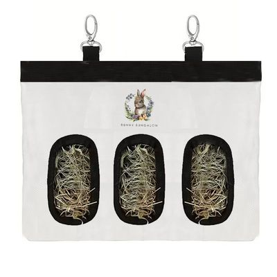 This hay feeder is great for keeping hay off the floor. Attach to your bunnies cage using the clips, and fill with fresh hay. Washable and with a velcro top that can be opened and closed.